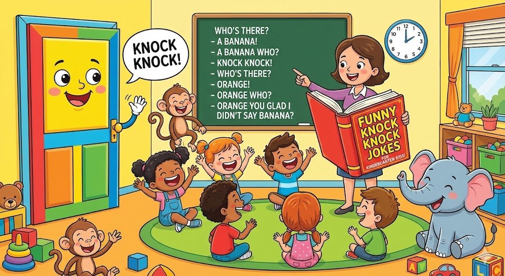 Kids love jokes that are short, silly and easy to remember, and that’s exactly what makes knock knock jokes so special for kindergarten children. These Funny Knock Knock Jokes for Kindergarten Kids focuses on fun, age-appropriate knock knock jokes that match how young kids think and laugh. Every joke is created to feel playful, light and friendly, making it easy for children to enjoy and share. Whether used during classroom activities or at home, these jokes help turn everyday moments into happy, laughter-filled experiences.